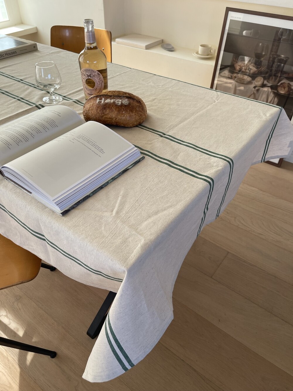 내추럴 원단에 심플하고 빈티지한 패턴은