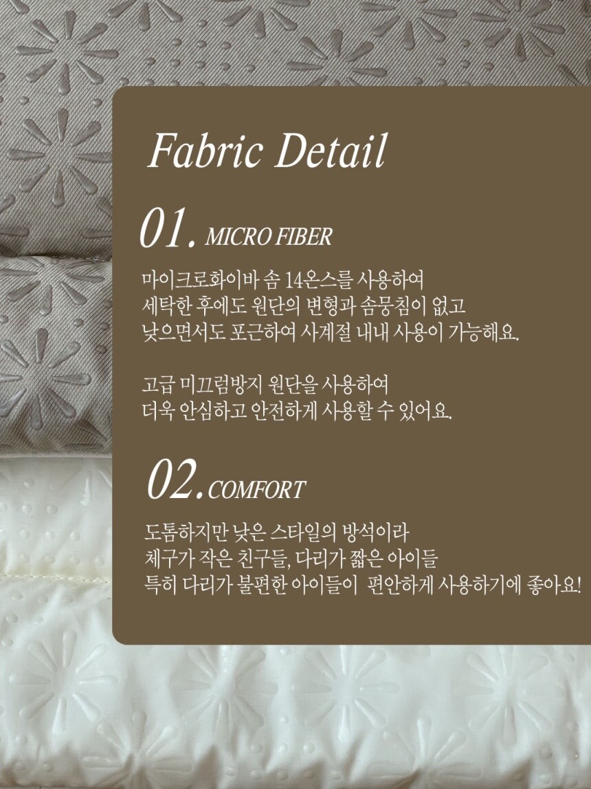 - 패브릭 소재는 세탁 후 약간의 수축현상이 있을 수