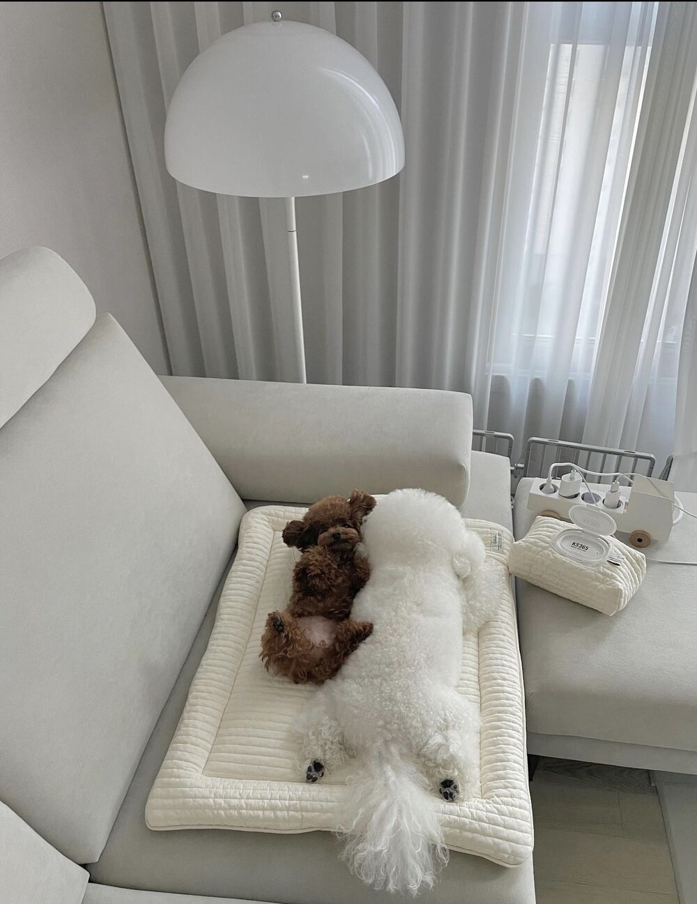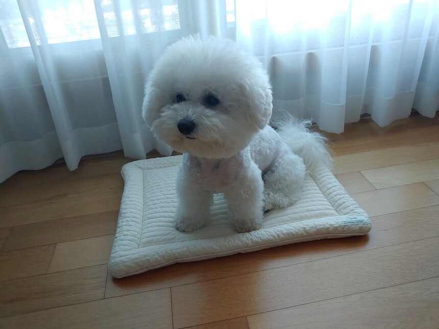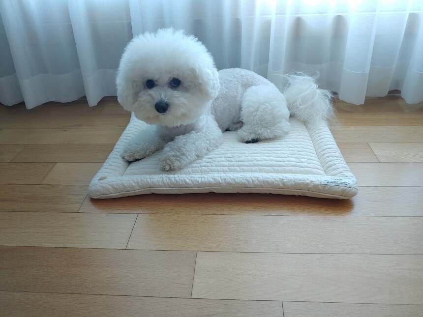 아이보리 색상 S사이즈에 앉혀 보았어요.