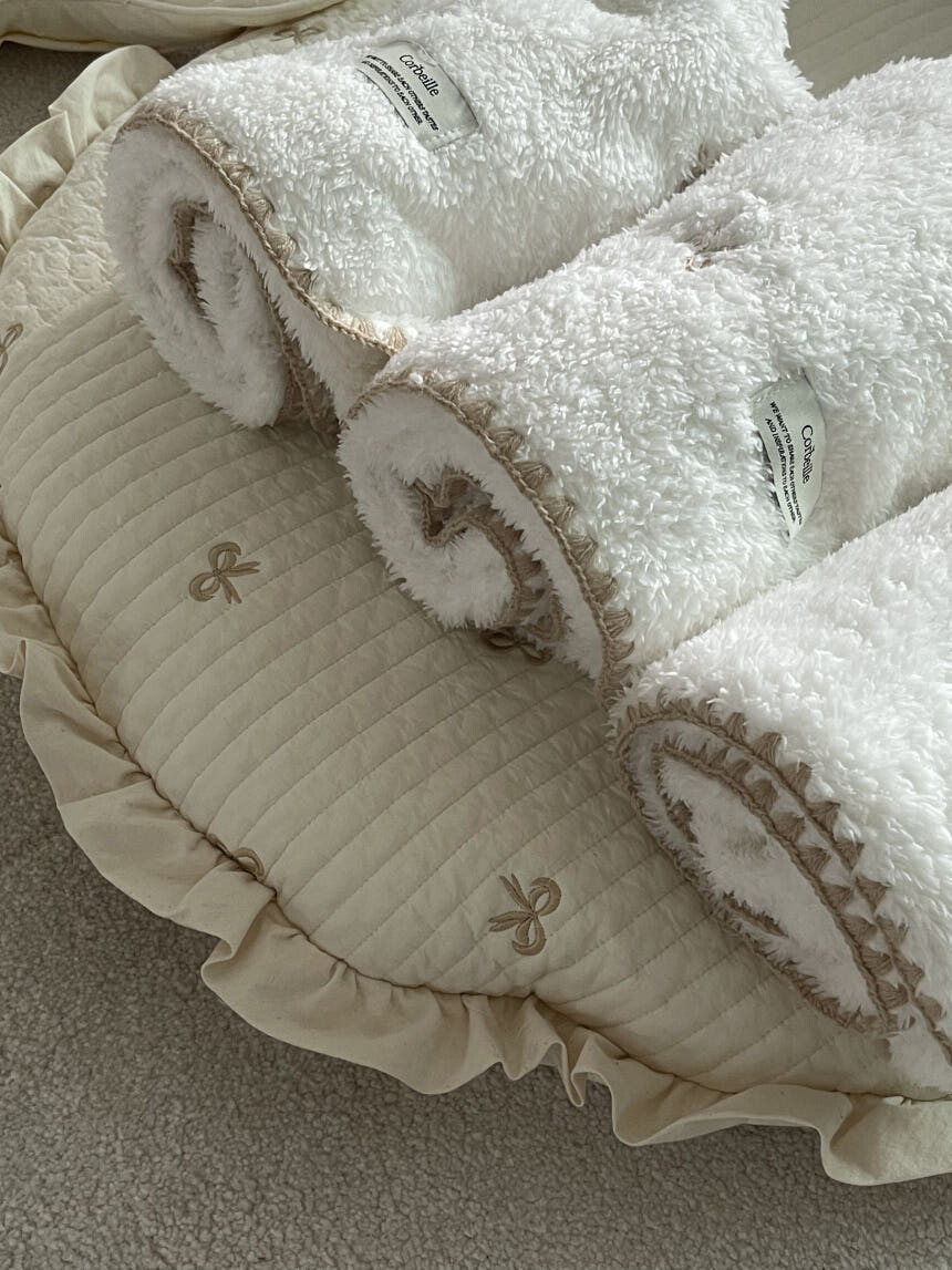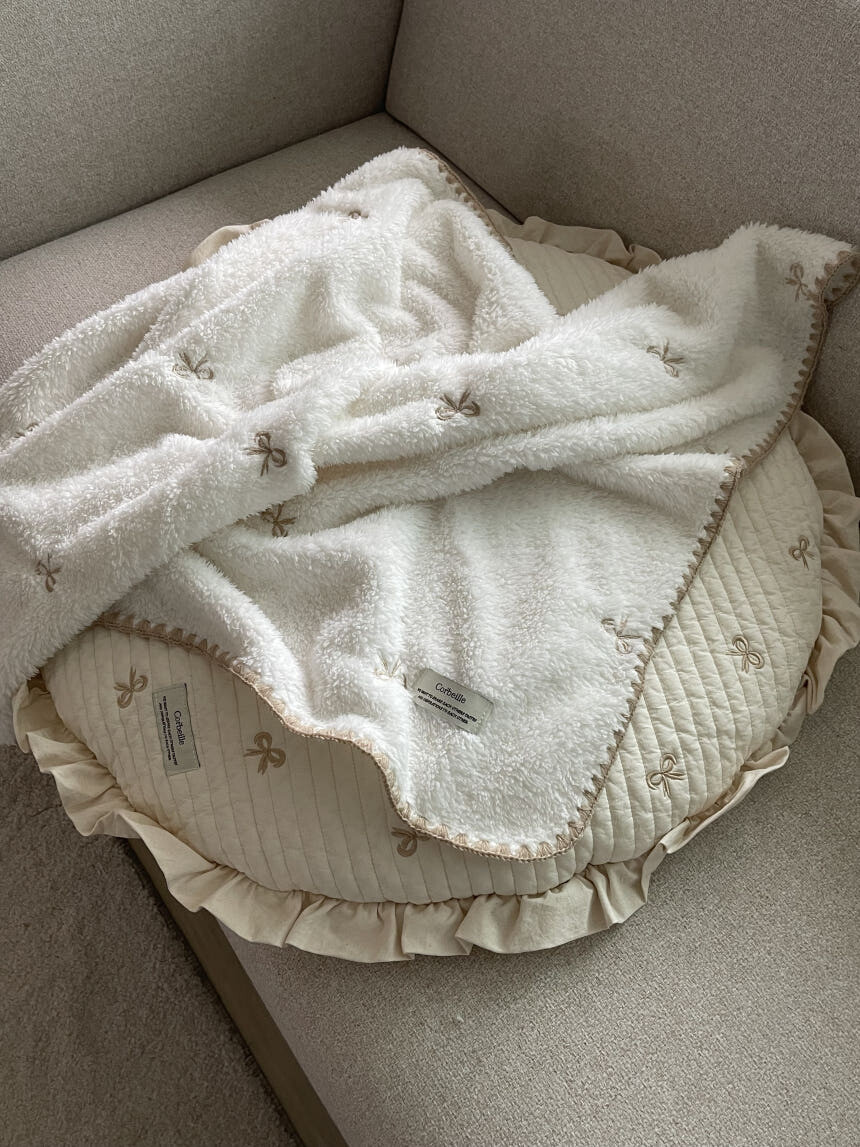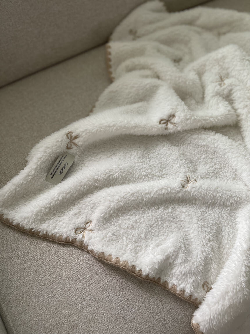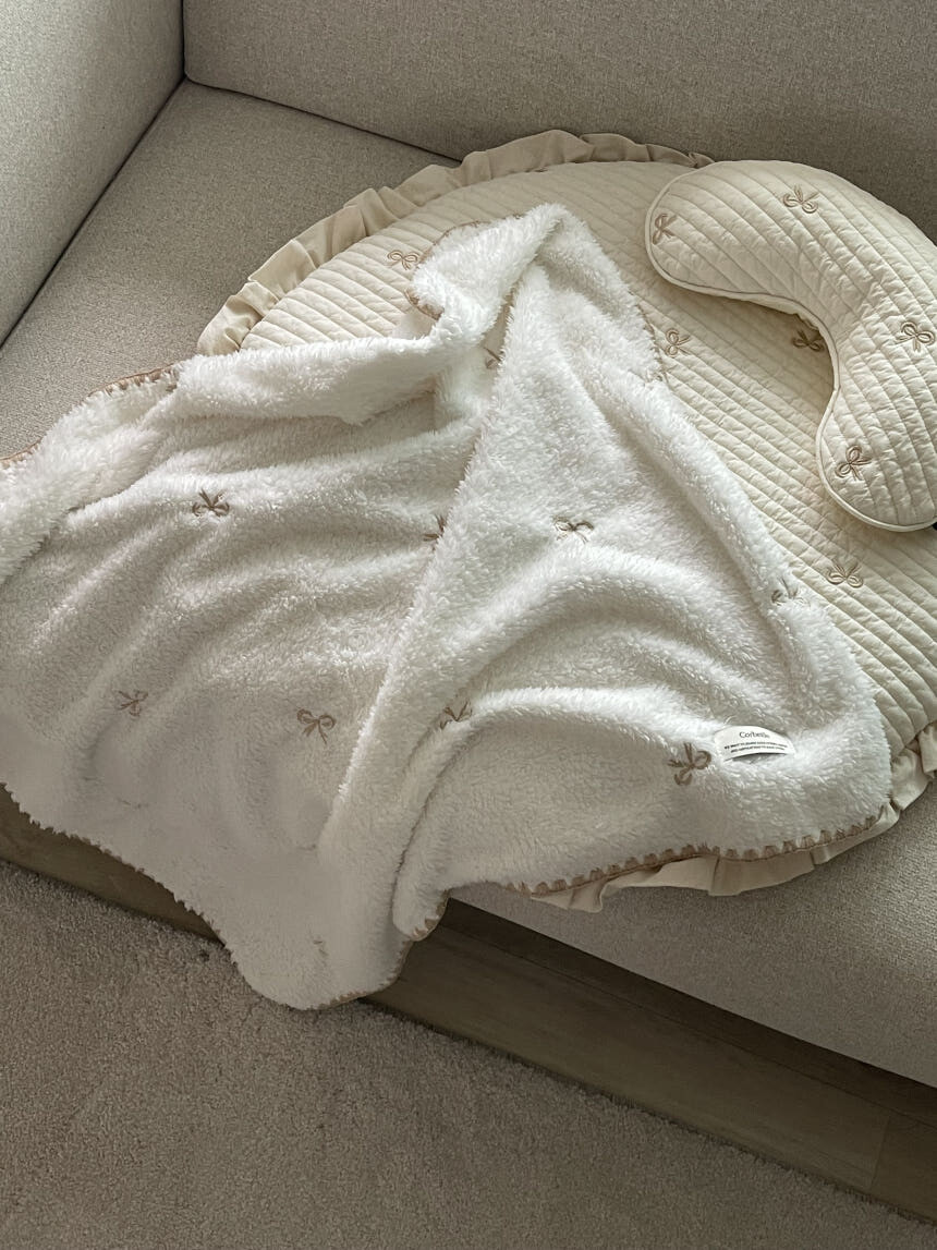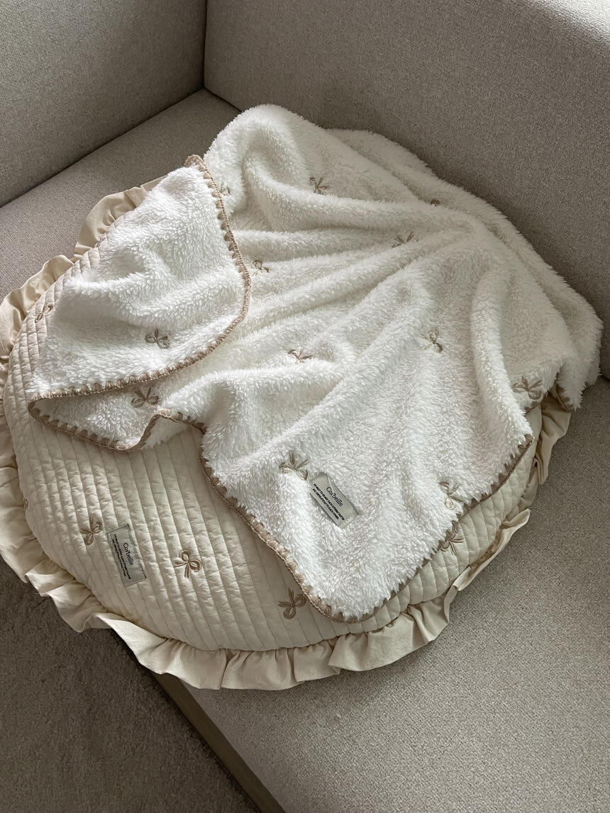 러블리 리본 자수 밍크 블랭킷