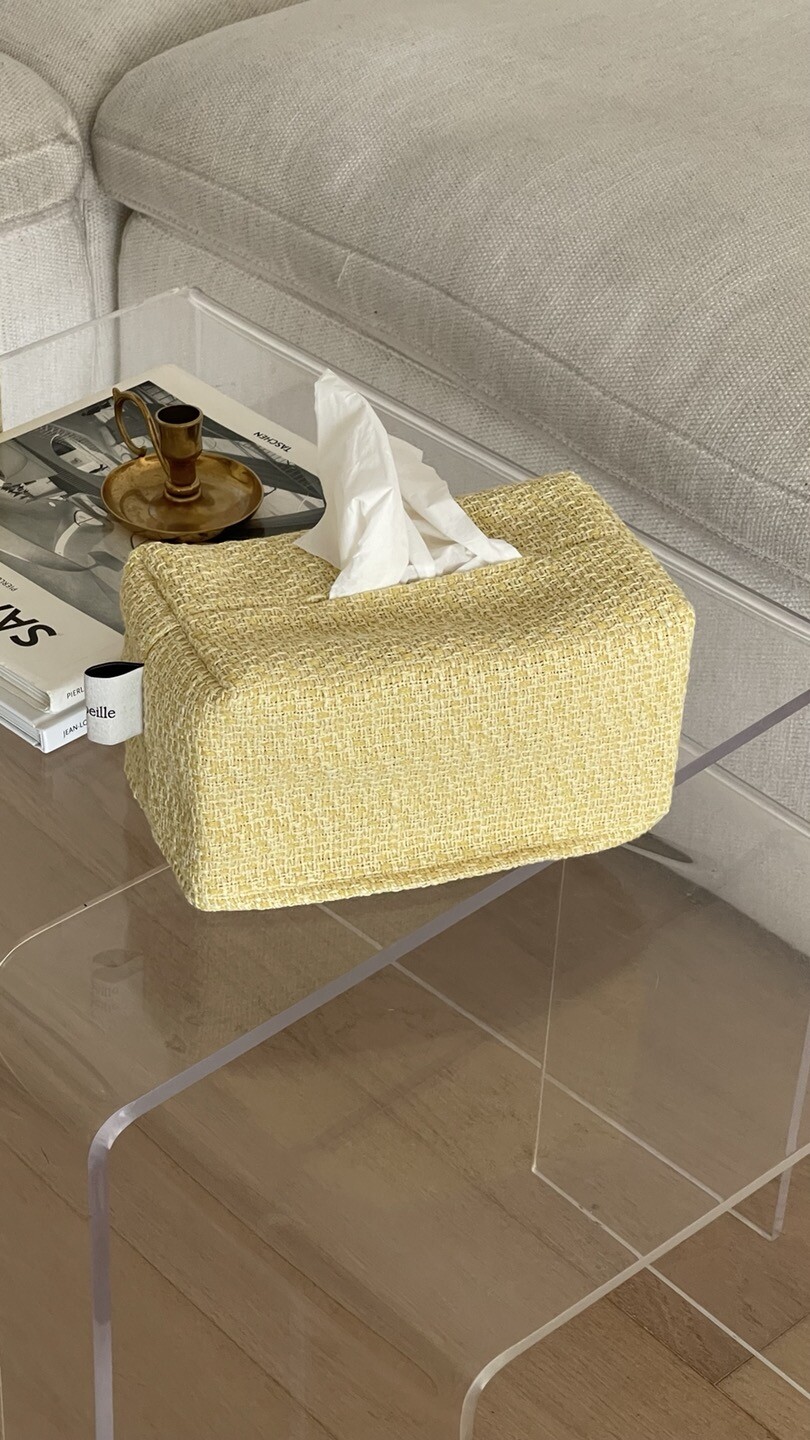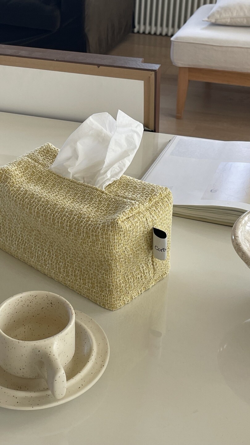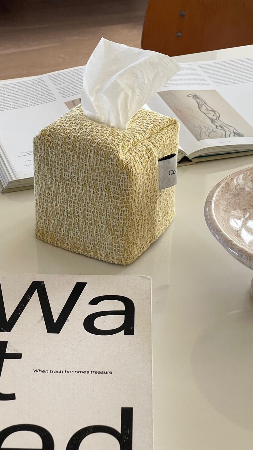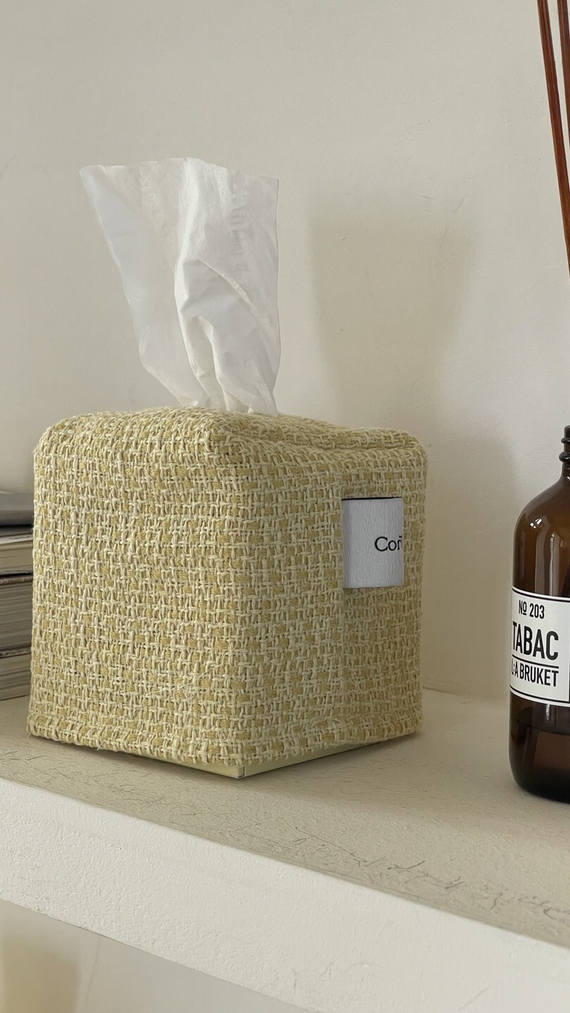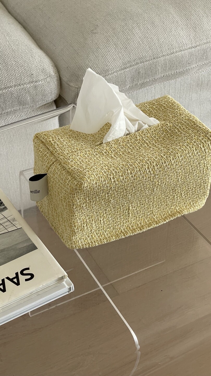 겨자빛 연두 트위드 티슈커버가
