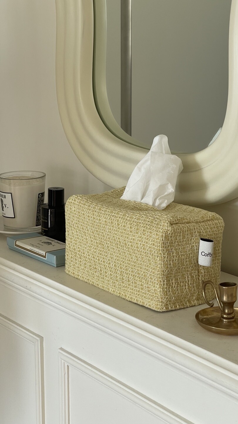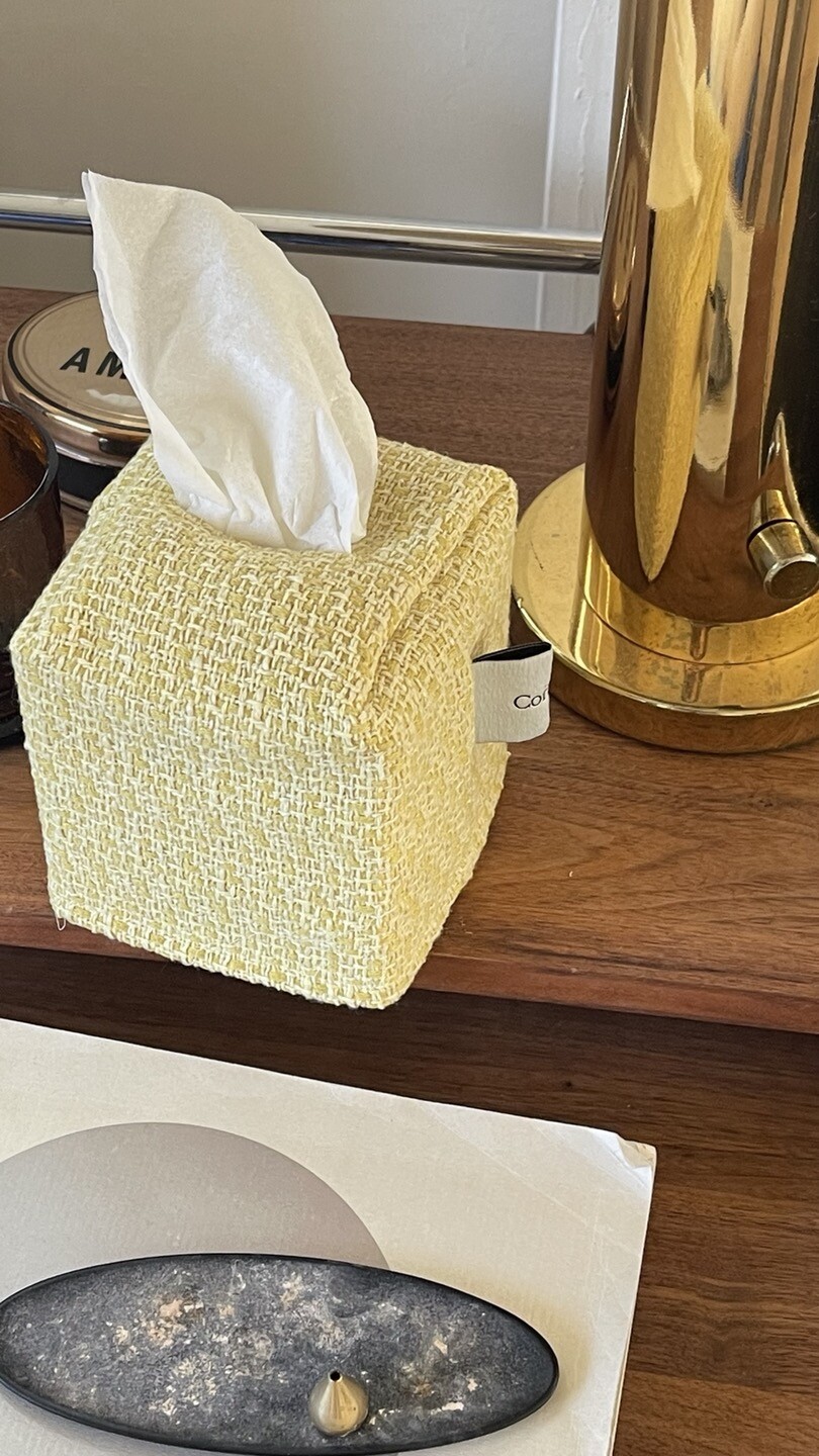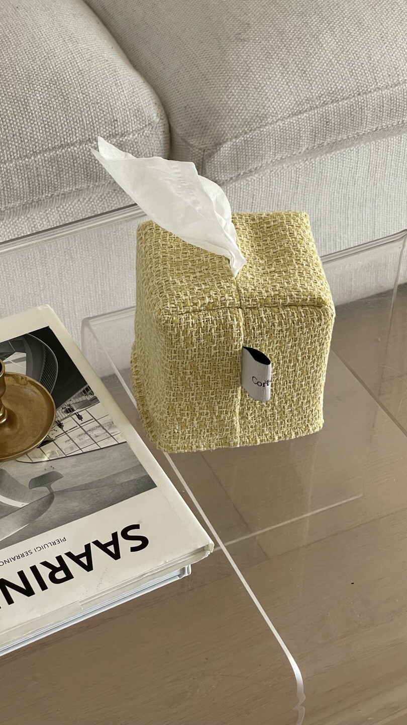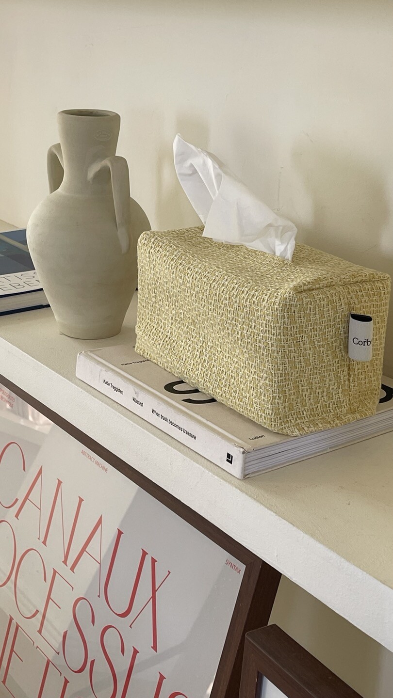 겨자빛 연두 트위드 티슈커버가