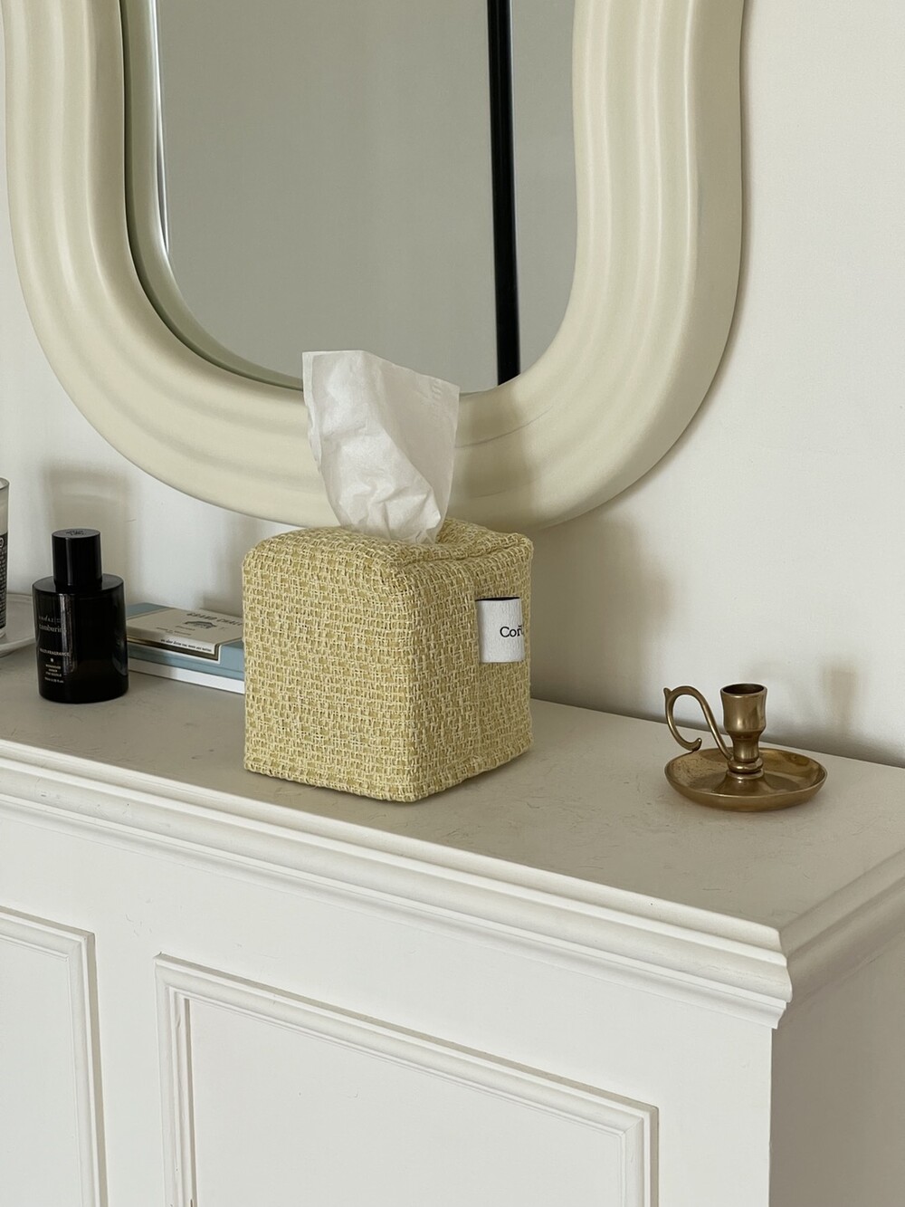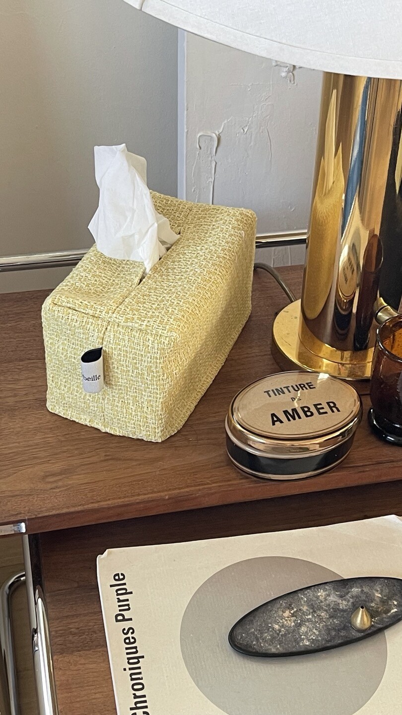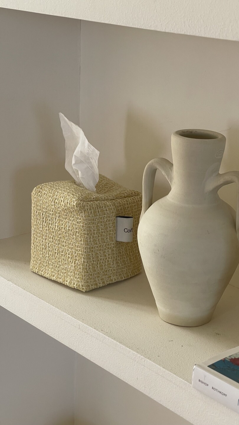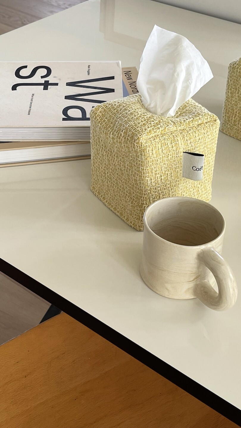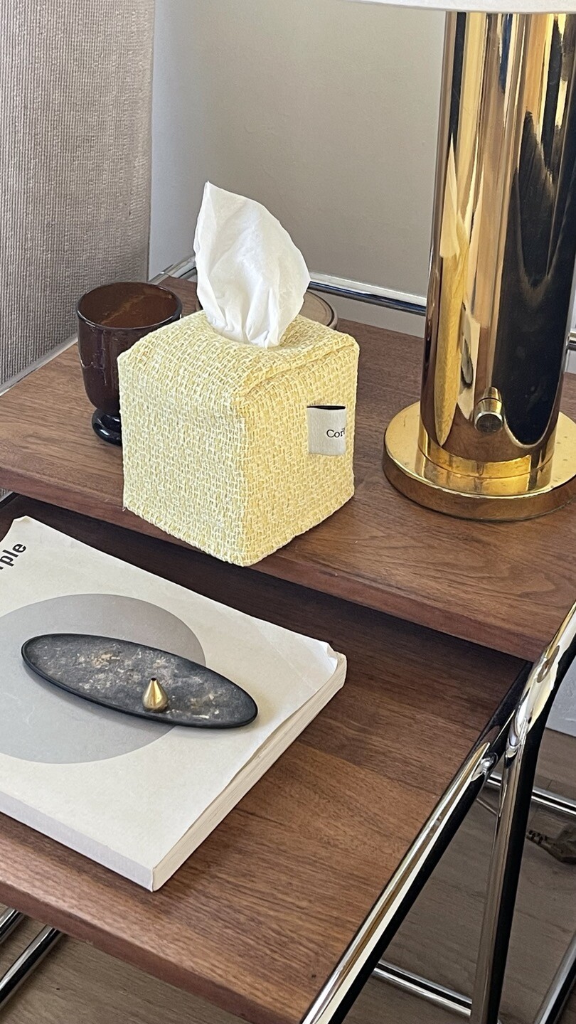 겨자빛 연두 트위드 티슈커버가