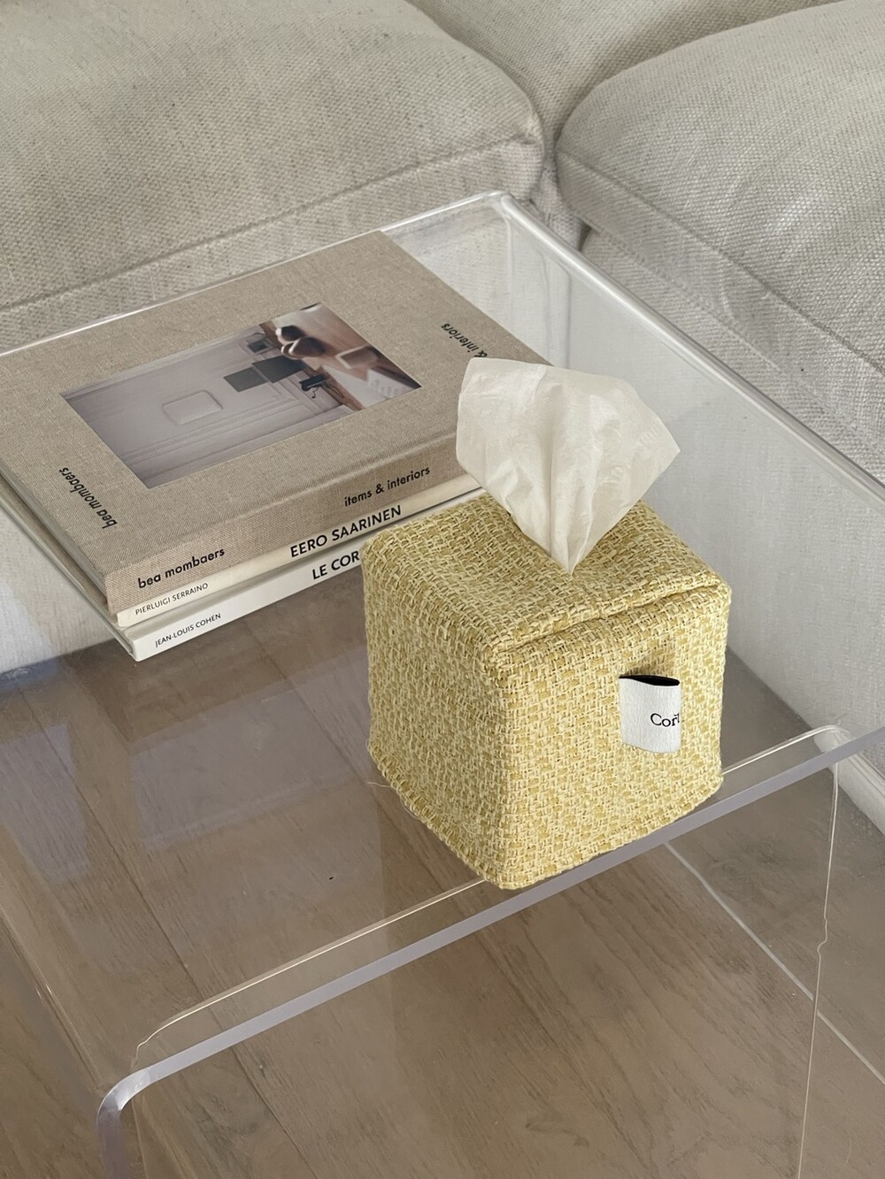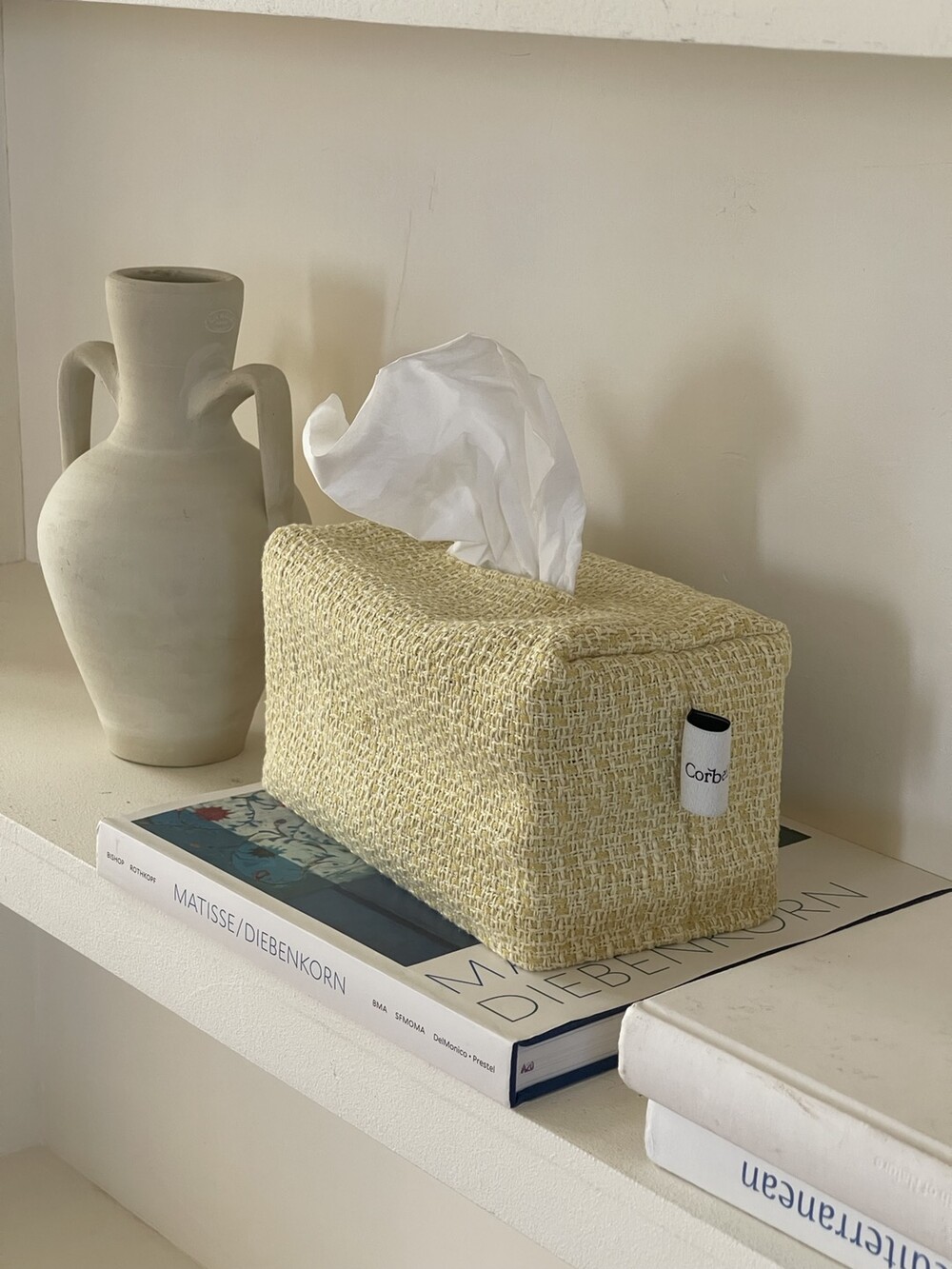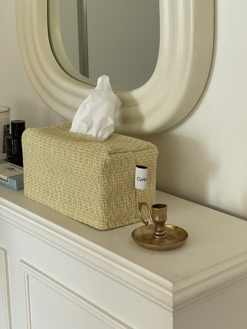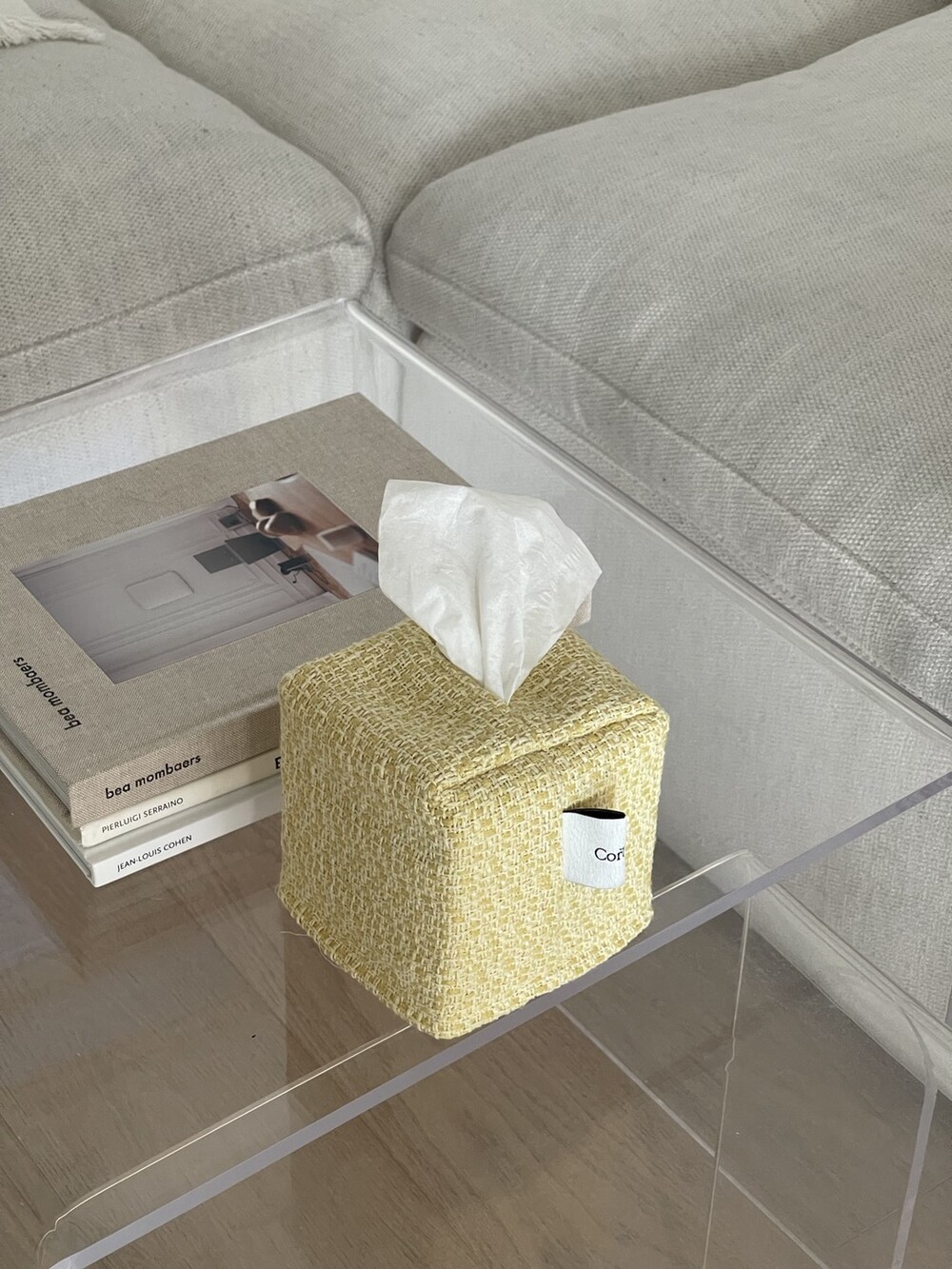 겨자빛 연두 트위드 티슈커버가