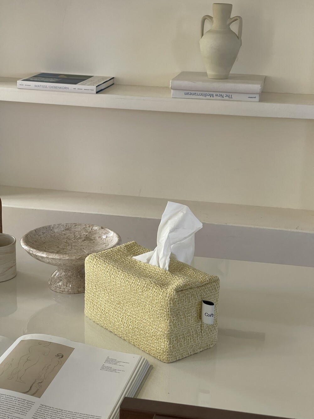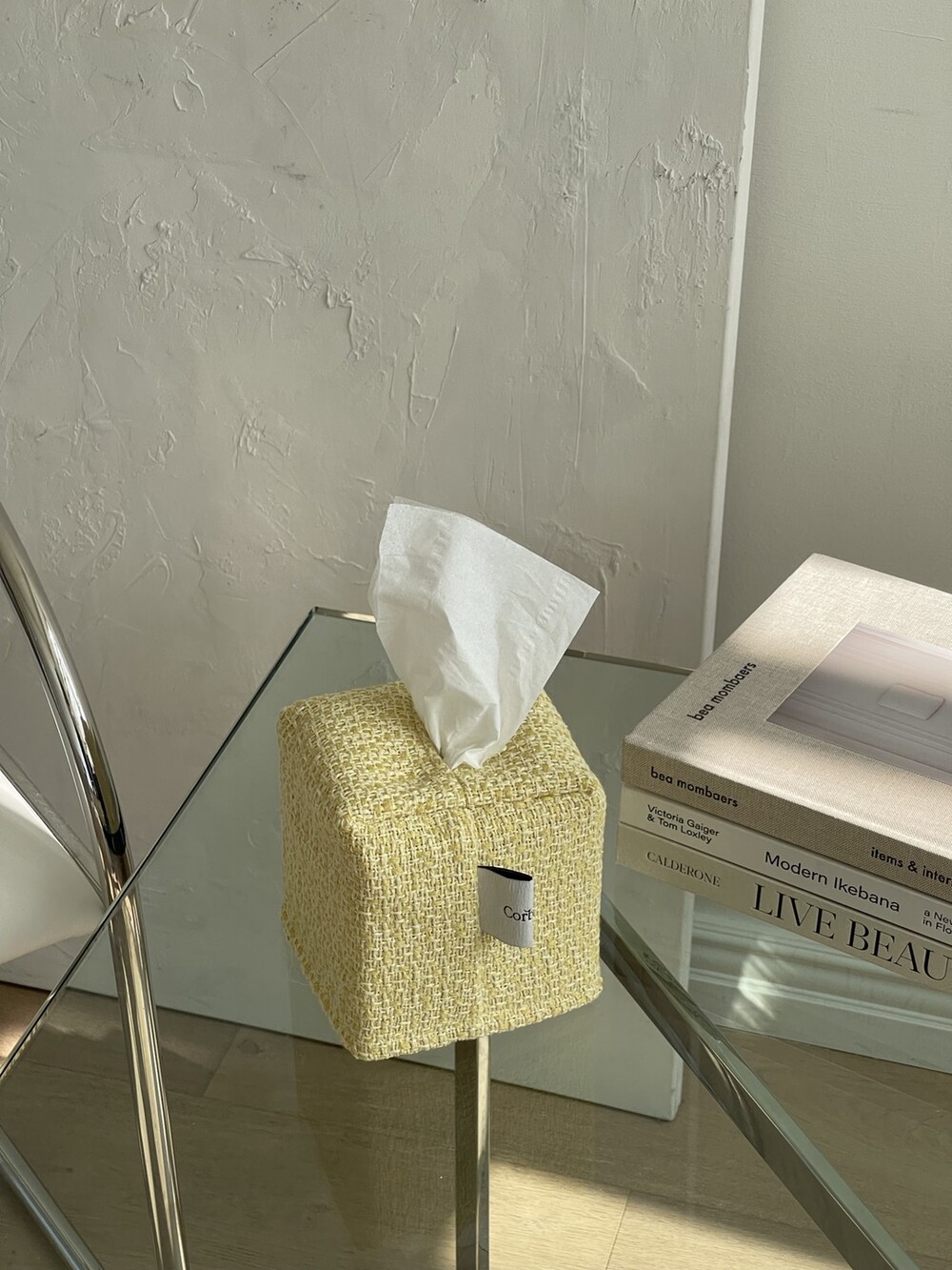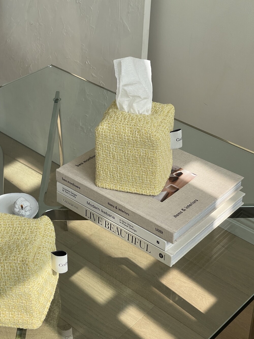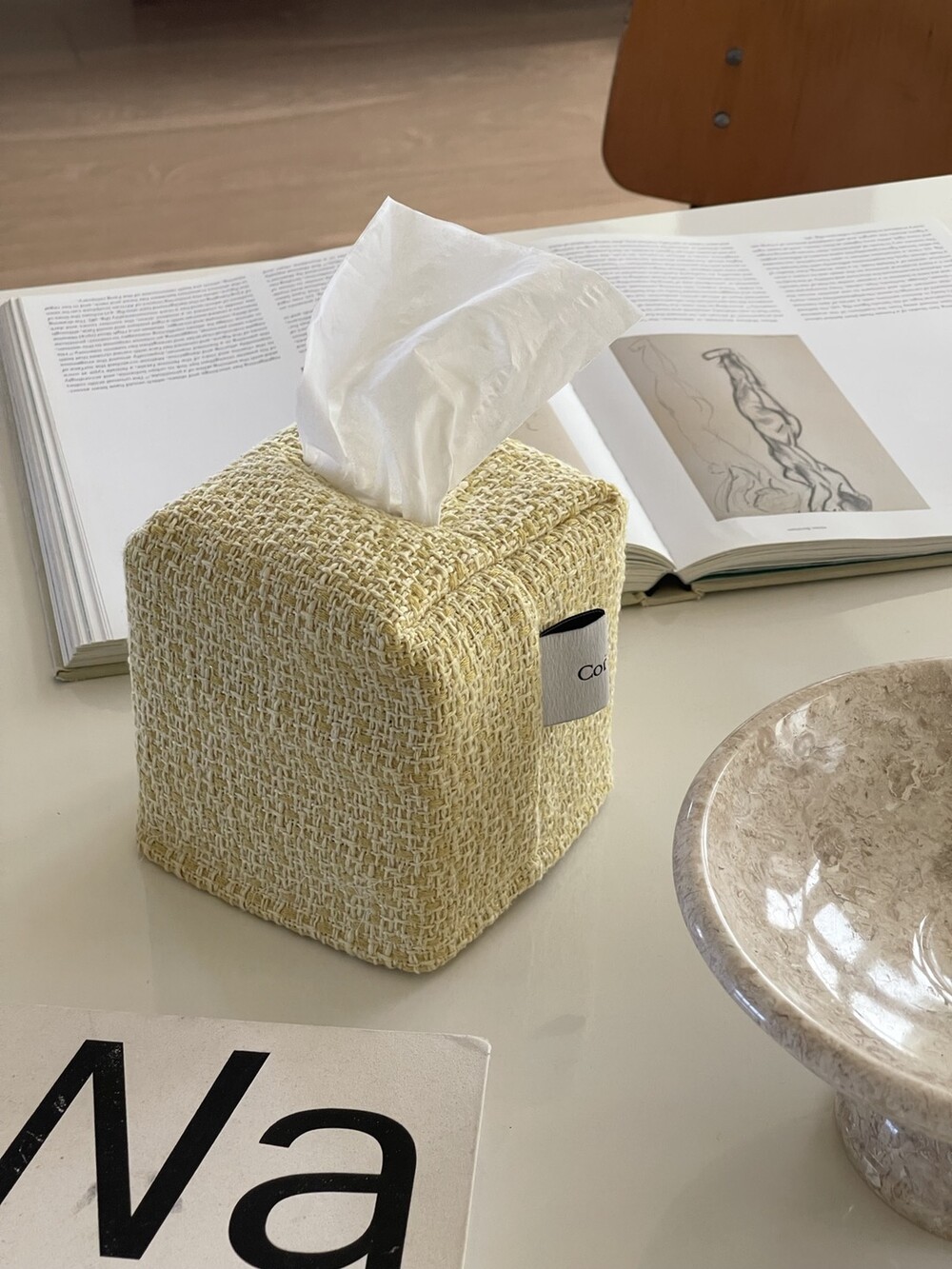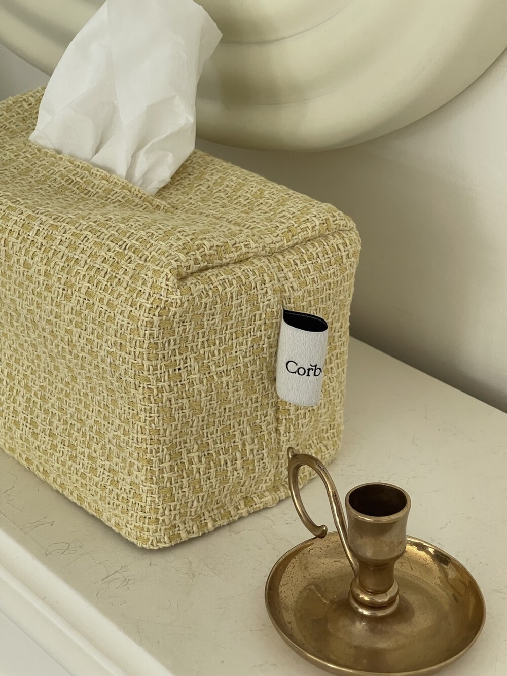 겨자빛 연두 트위드 티슈커버가