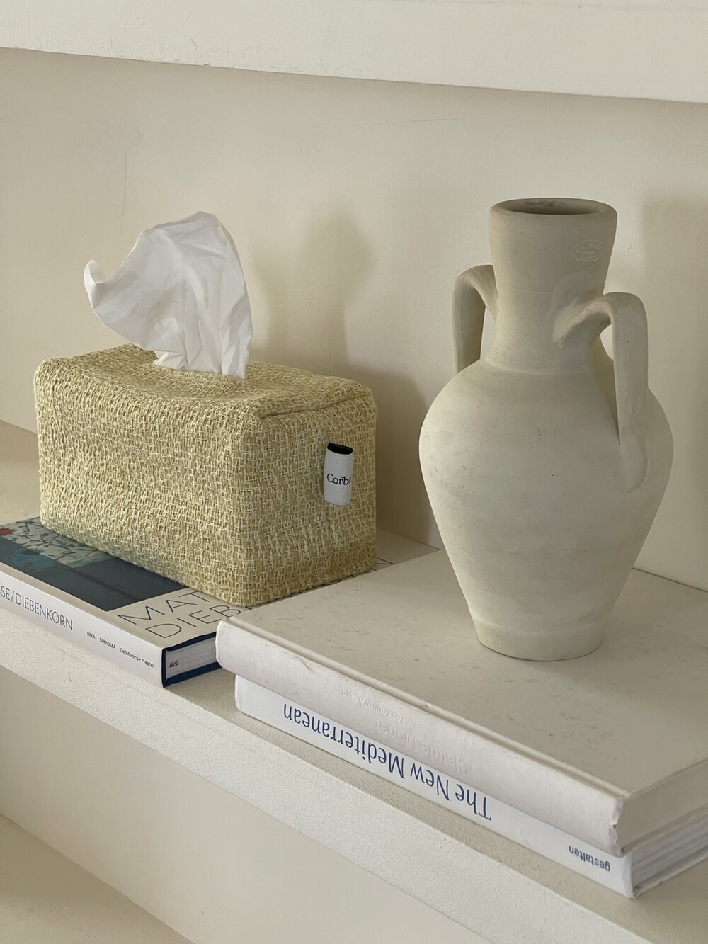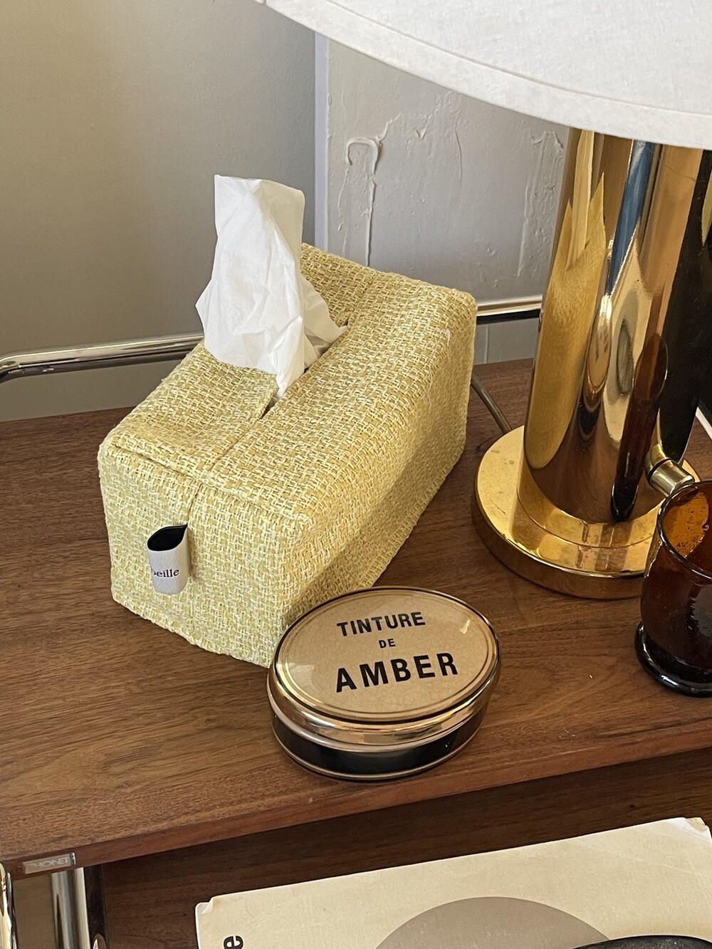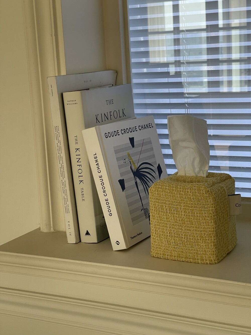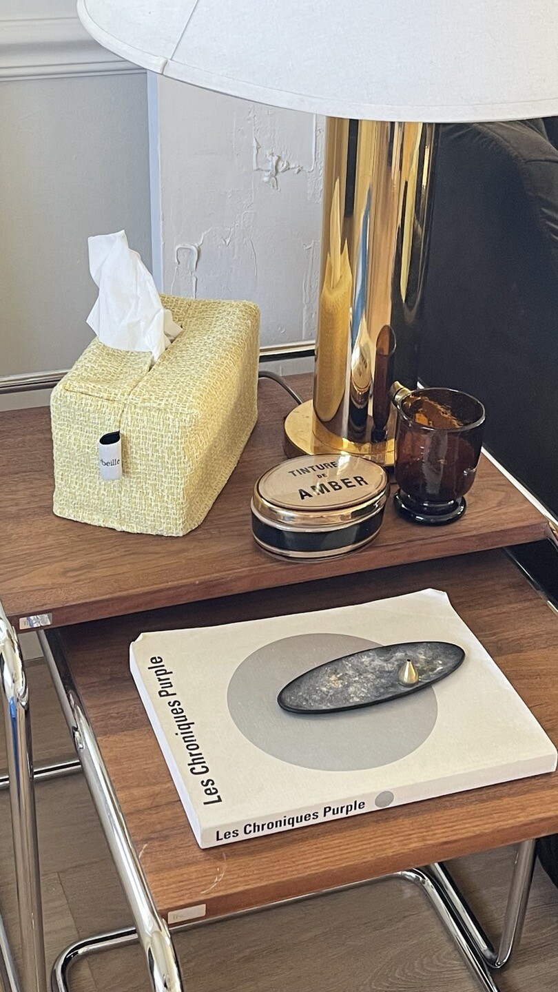 겨자빛 연두 트위드 티슈커버가