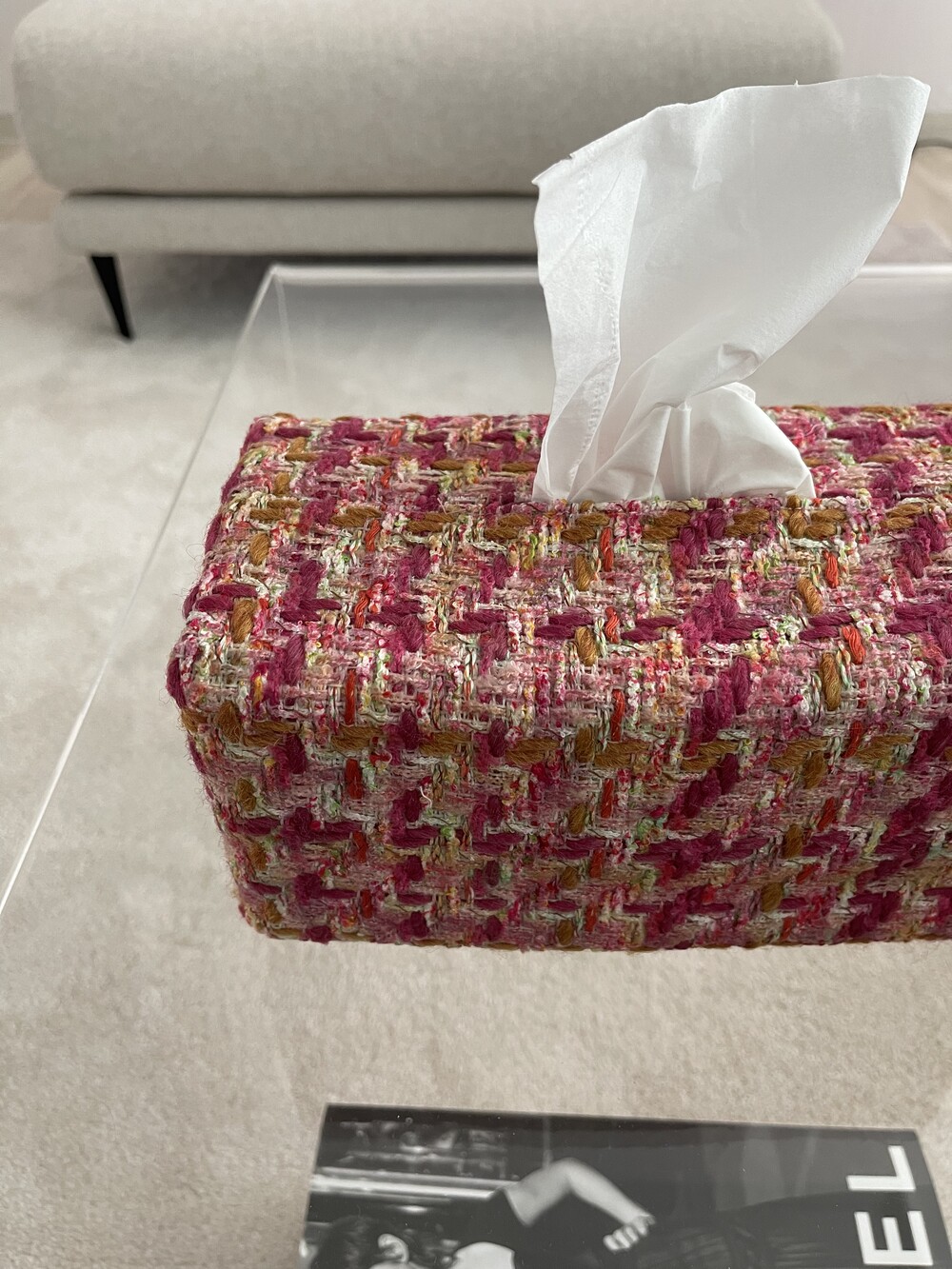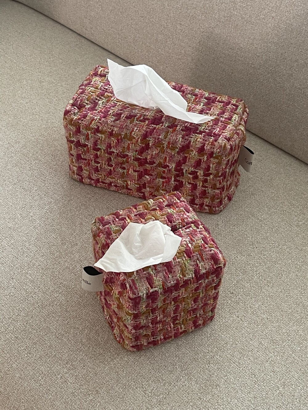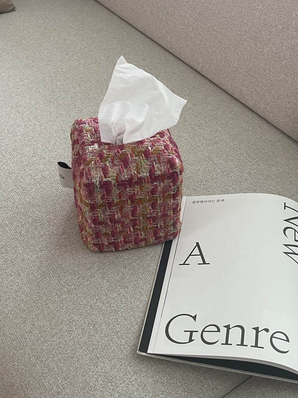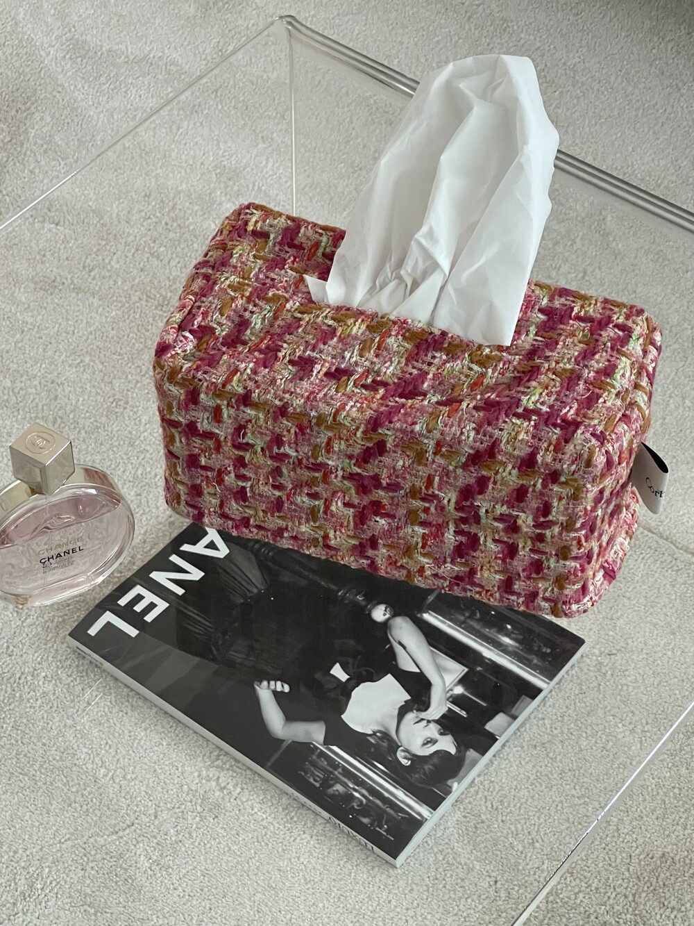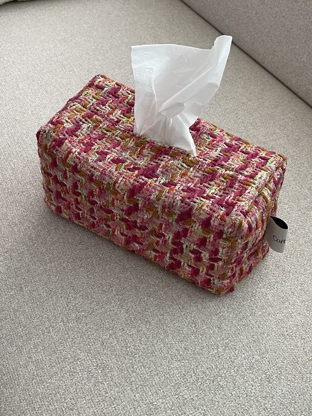 러블리한 핑크 트위드 티슈커버가
