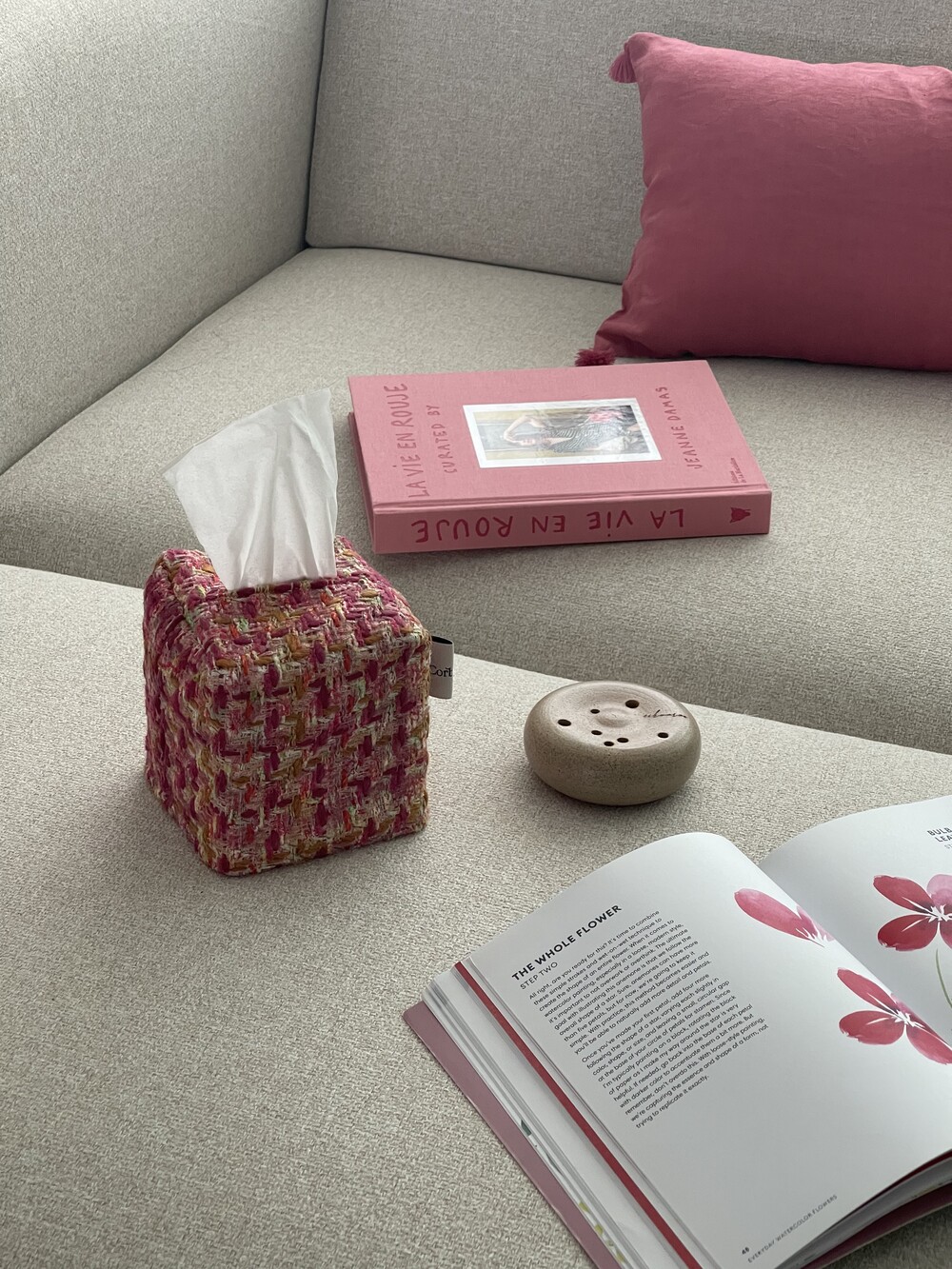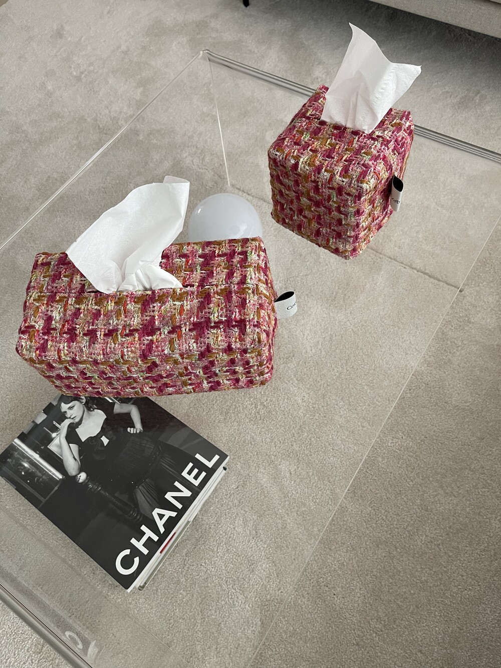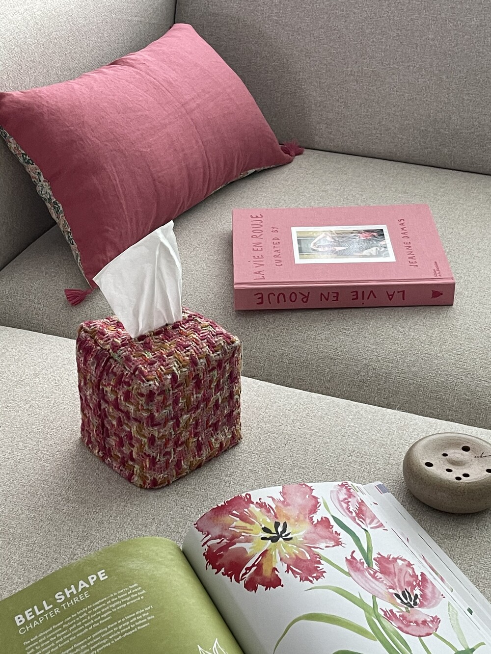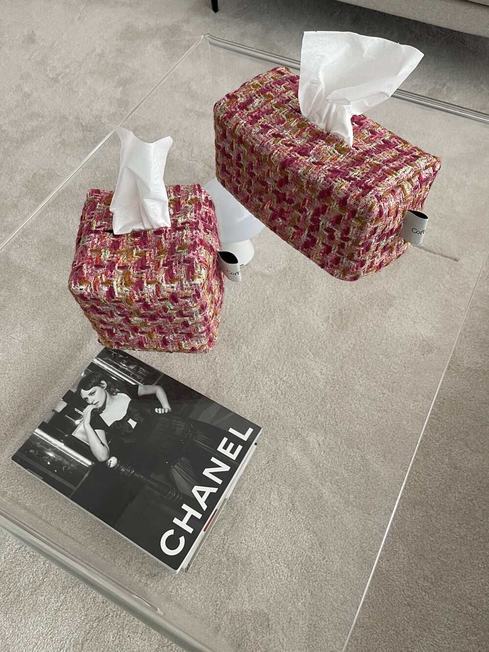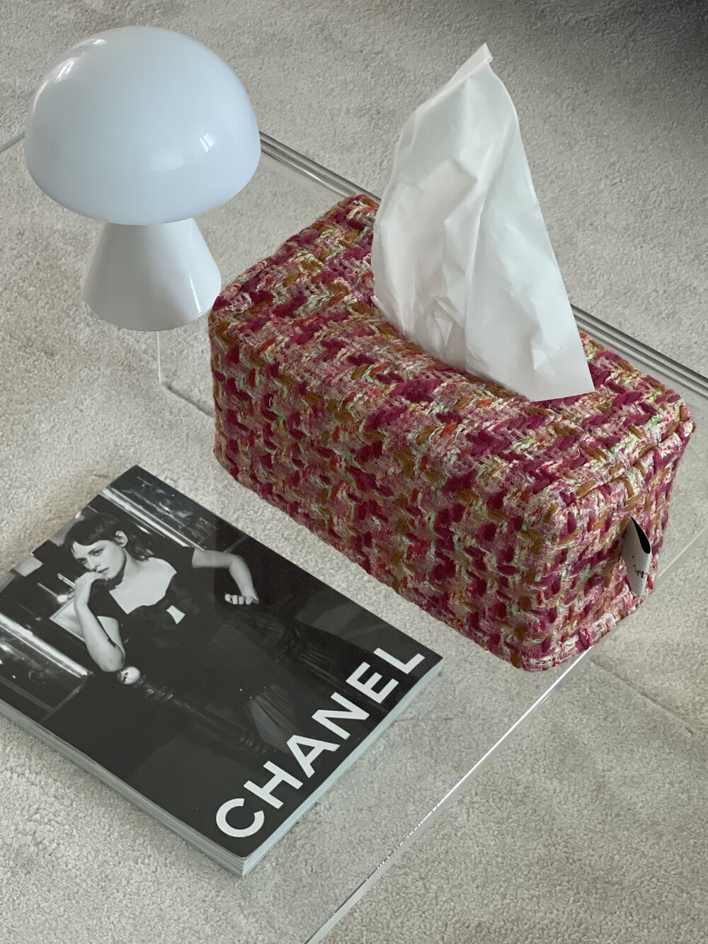 러블리한 핑크 트위드 티슈커버가