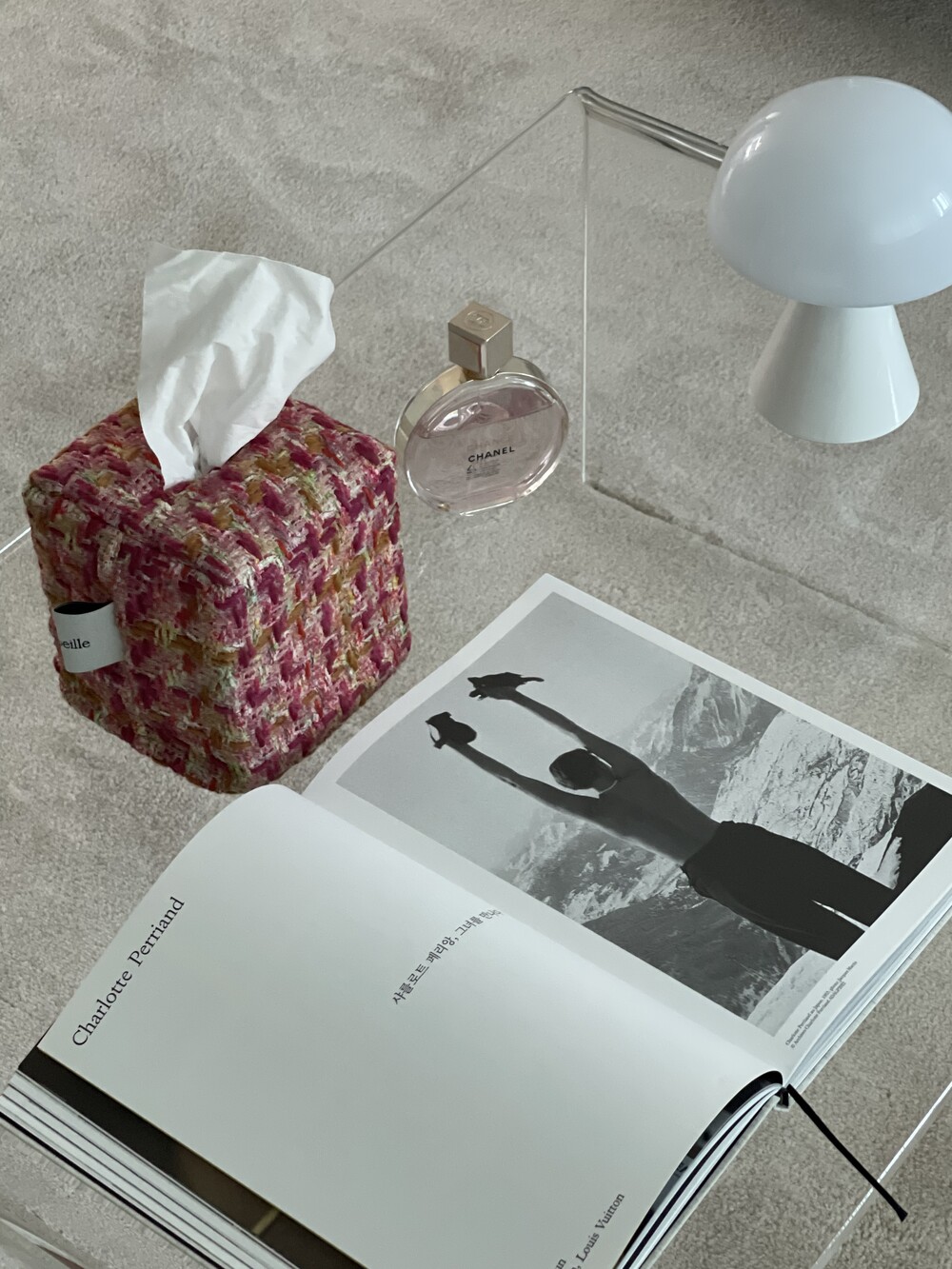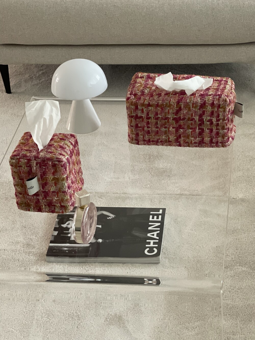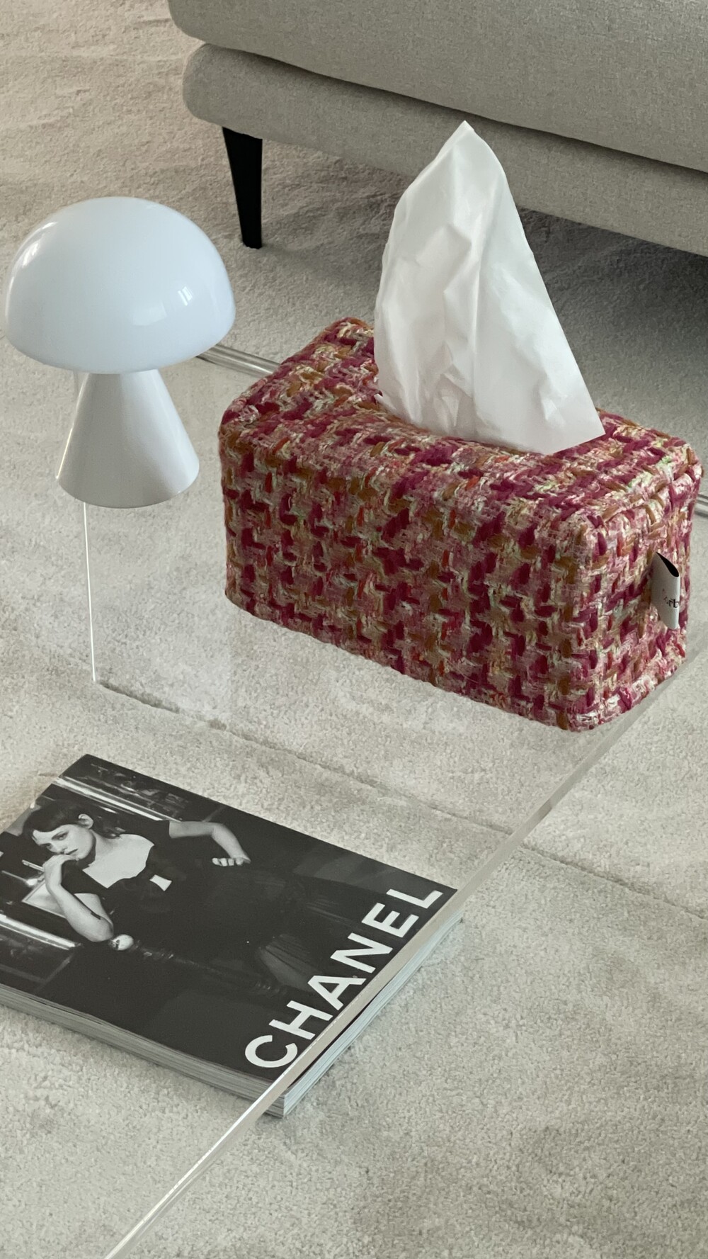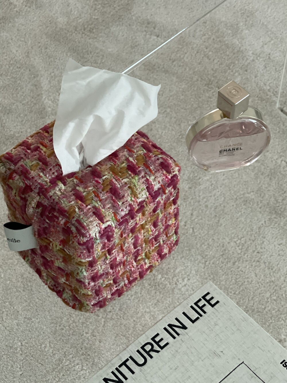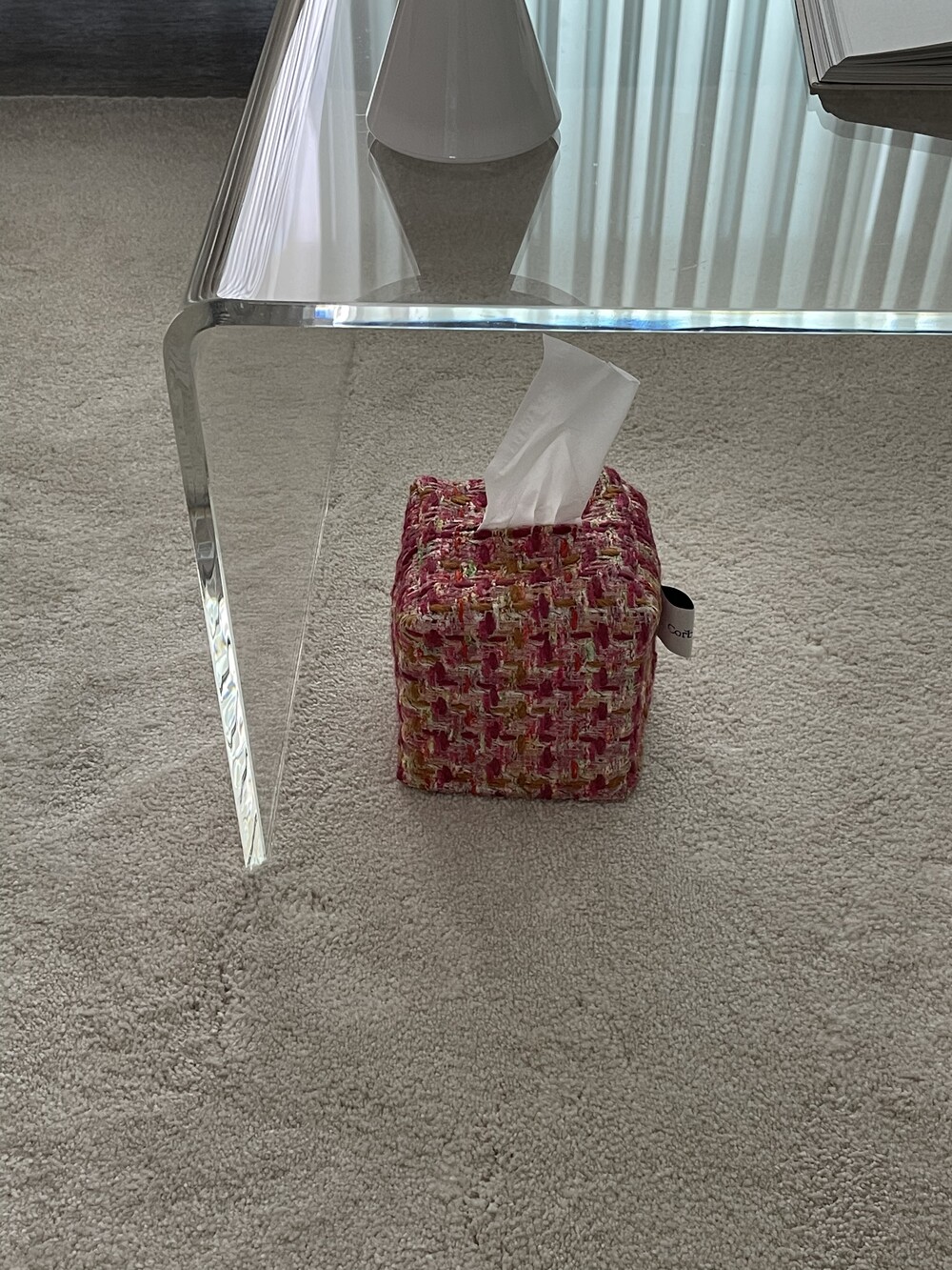 러블리한 핑크 트위드 티슈커버가